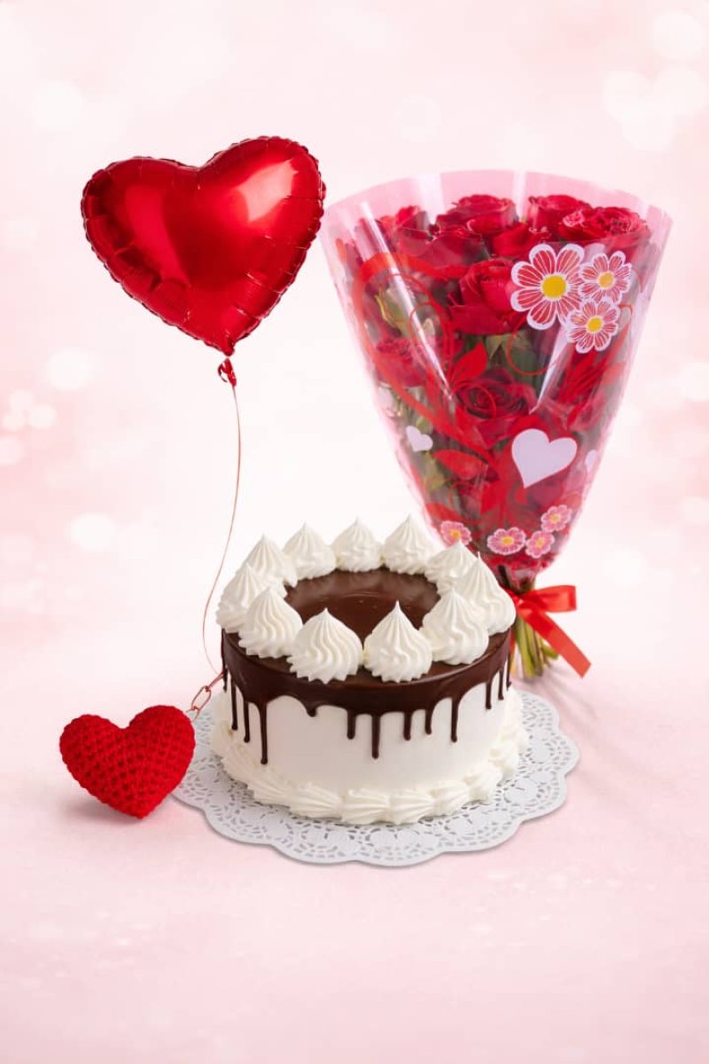 Día de Las Madres se entrega toda la Orden que incluya este Combo. Este regalo incluye: 1 Cake Cobertura de Chocolate, de Masa de Maicena relleno de crema de Chocolate. Ideal para 8 porciones. 1 Ramo de Rosas Naturales 1 Globo pequeño en forma de Corazón o estrella según disponibilidad Incluye además un Llavero de Corazón Tejido como regalo de nuestra parte. Celebremos todos a mamá.