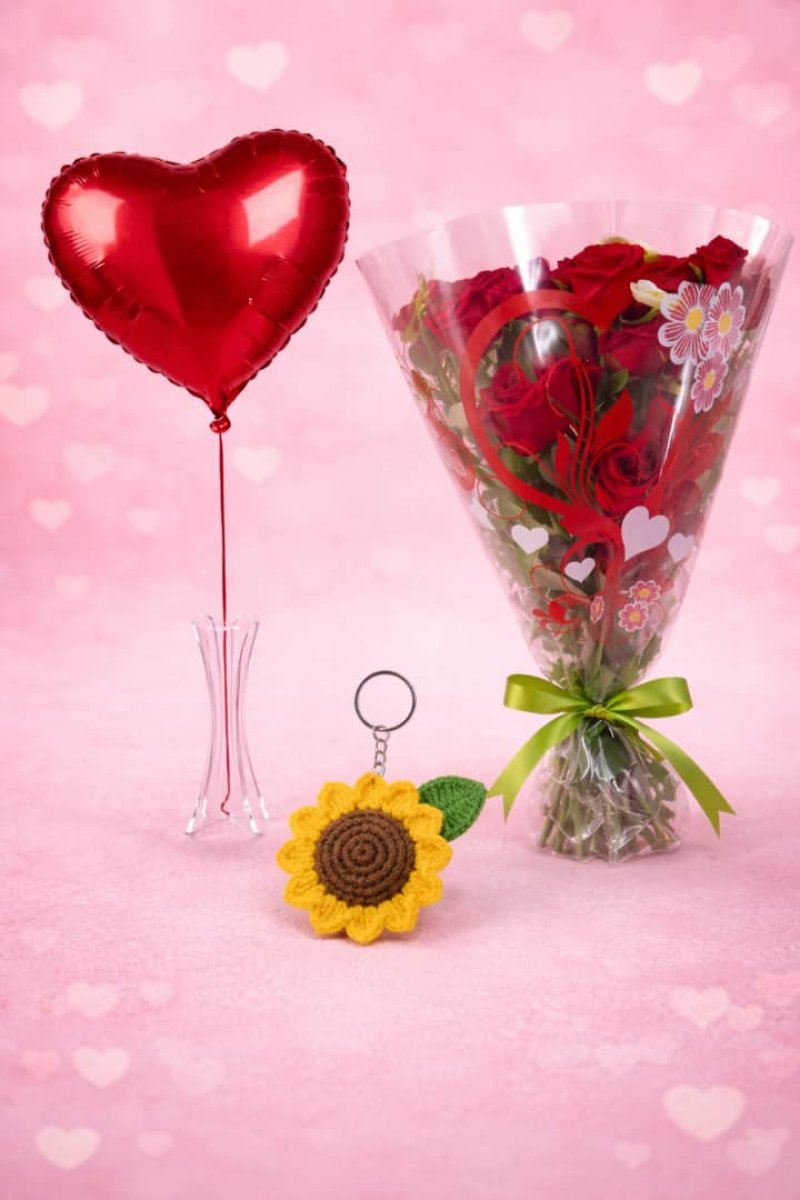 Día de Las Madres se entrega toda la Orden que incluya este Combo. Este regalo incluye: 1 Ramo de Rosas Naturales 1 Globo pequeño en forma de Corazón o estrella según disponibilidad Incluye un llavero en forma de flor, como regalo de parte de la casa. Celebremos todos a mamá.
