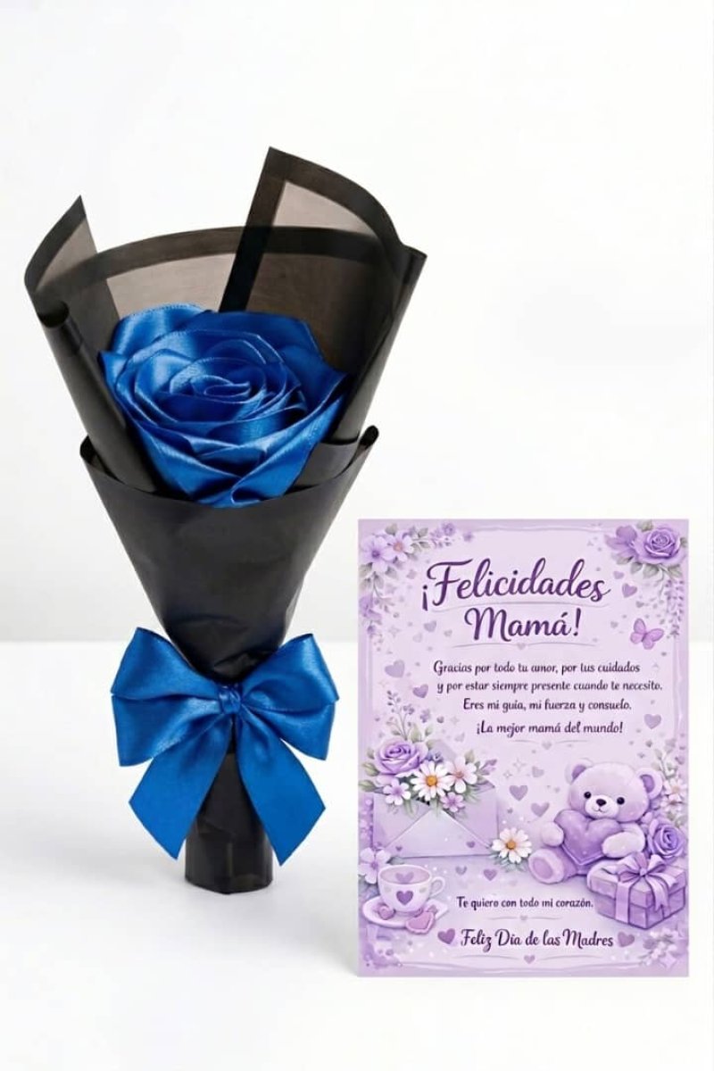 Día de Las Madres se entrega toda la Orden que incluya esta oferta. Este regalo incluye: Una hermosa Rosa Eterna, el color puede variar según disponibilidad. Una tarjeta de felicitación por el Día de las madres