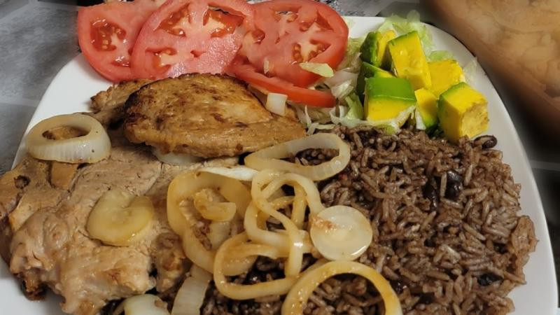 Bistec de cerdo (115g) encebollado o grillé acompañado con congrís cubano, vianda frita y ensalada. Todo servido y listo para disfrutar. (En la entrega a domicilio la presentación del producto puede variar manteniendo siempre la calidad cantidad y peso correspondiente)