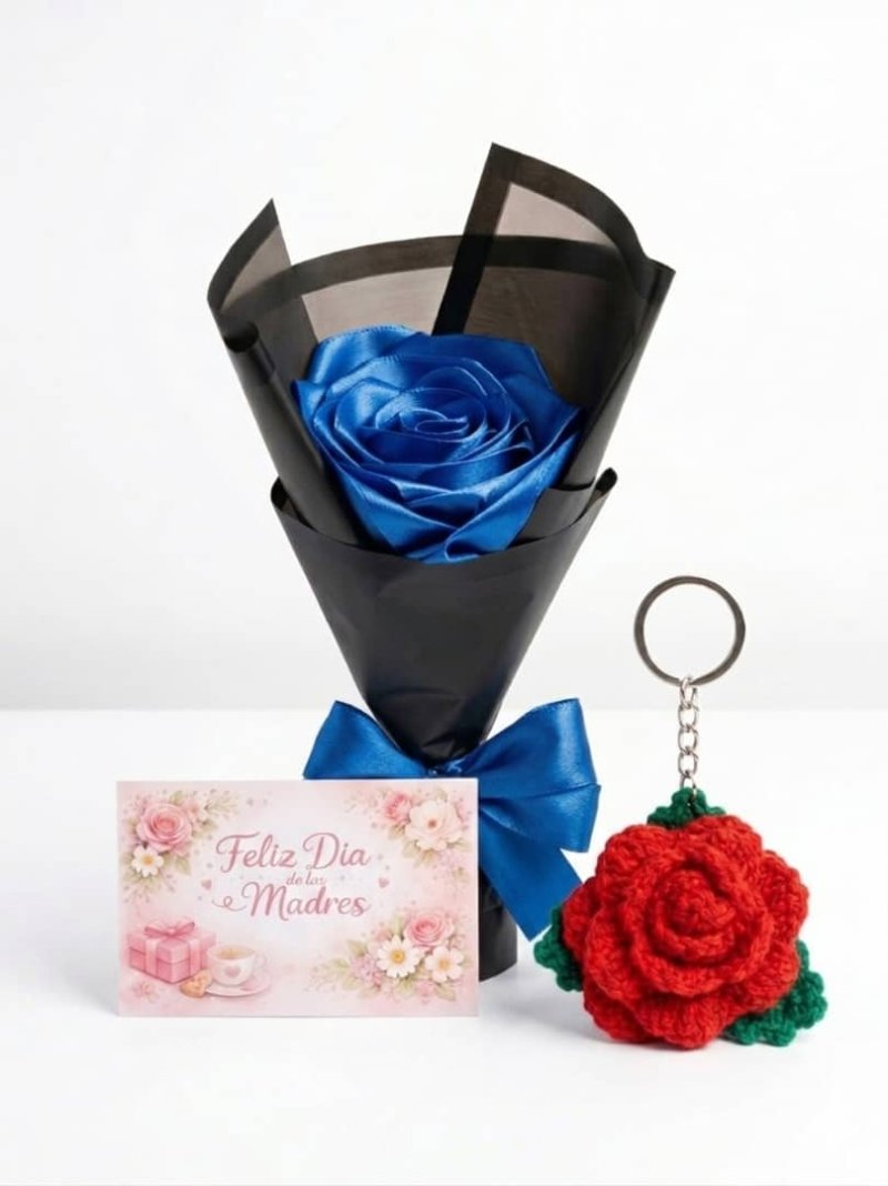 Día de Las Madres se entrega toda la Orden que incluya este Combo. Este regalo incluye: Una Rosa Eterna, el color puede variar según disponibilidad. Un llavero en forma de rosa, ideal para bolsos, carteras o llaves. Una Tarjeta de felicitación por el Día de las Madres.