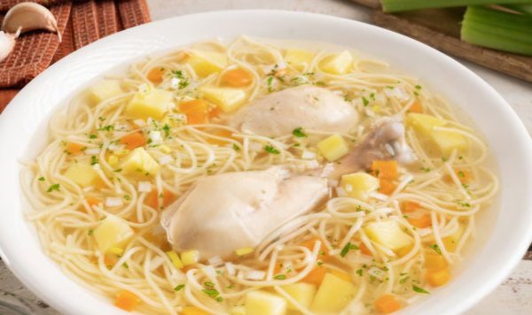 Pollo, especias, malanga, maíz, fideos, queso parmesano