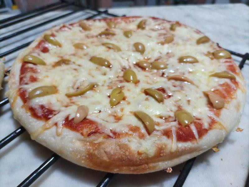 Base de salsa de tomate con hierbas mixtas queso blanco y aceitunas