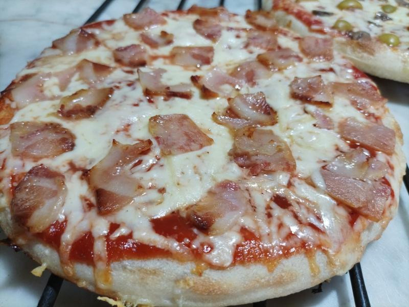 Base de salsa de tomate queso blanco 90g y bacon 60g