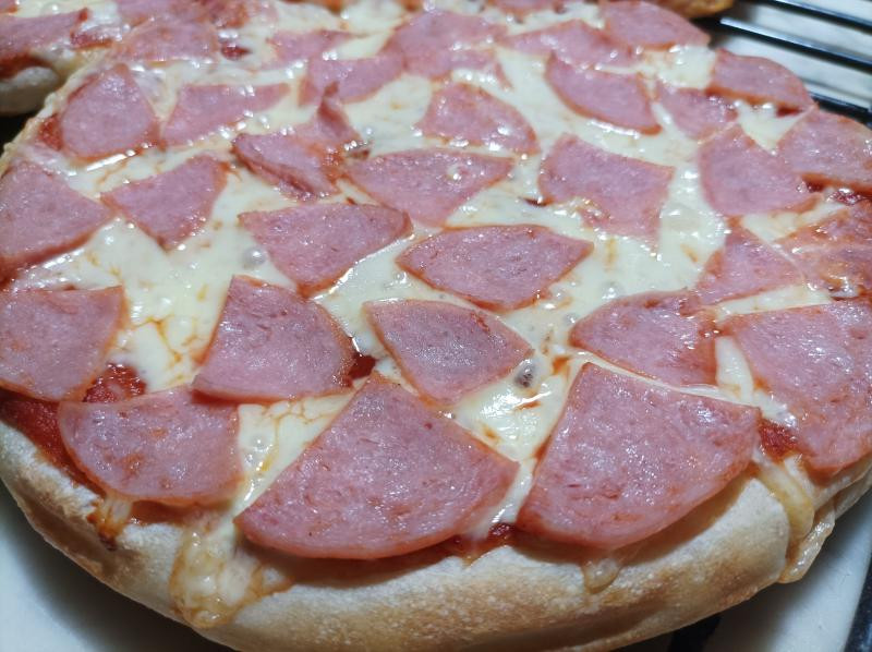 Base de salsa de tomate con hierbas mixtas queso blanco y jamón